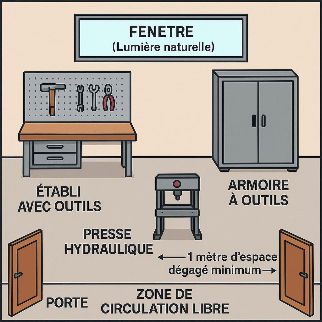L’emplacement et l’agencement de votre presse hydraulique dans l’atelier influencent directement votre productivité et votre confort de travail quotidien.